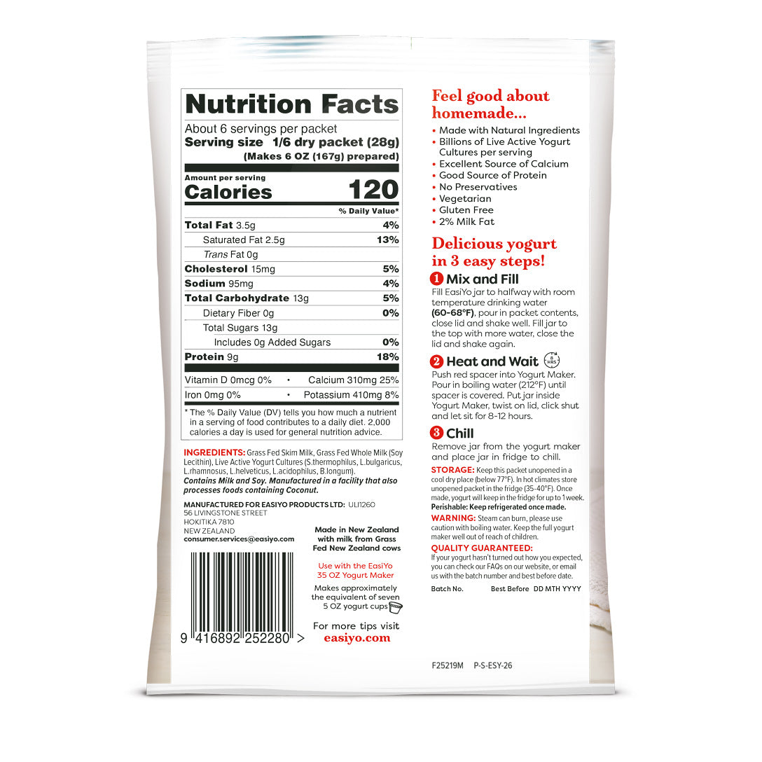 • One Pack Greek Style Plain 2% Yogurt Base/Mix (Makes 1 Quart)